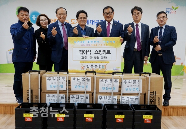 대전 유성구 노은3동(동장 유재건)은 2일 노은3동주민센터에서 탄동농협(조합장 이병열)으로부터 저소득 노인을 위한 100만원 상당의 접이식 쇼핑카트 50개를 기탁 받았다고 밝혔다.