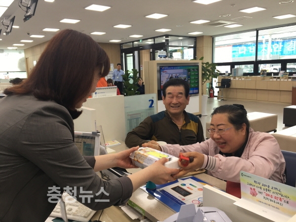NH농협은행 충남영업본부는 계란 소비 부진과 가격하락으로 어려움을 겪고 있는 충남 농업인을 위해 지난달 26일부터 2일까지 대고객 사은품으로 계란을 전달했다.