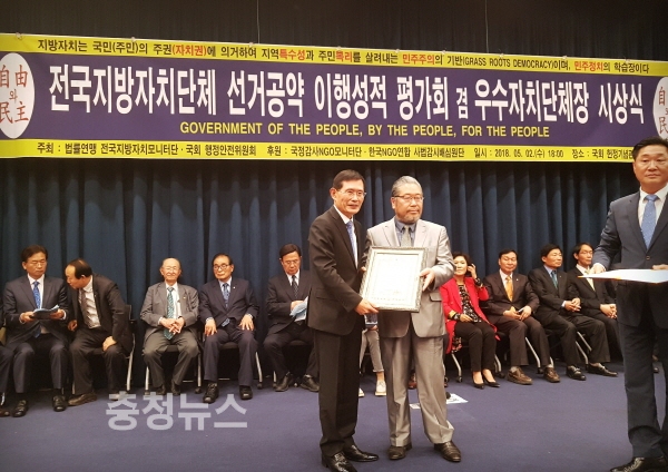 금산군, 자치단체장 공약이행평가 ‘대상’ 수상