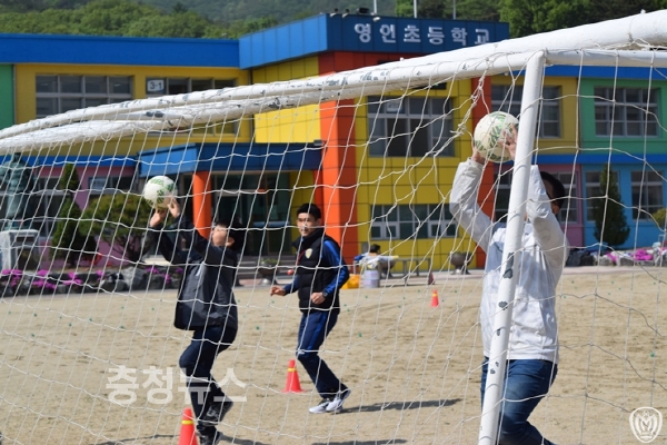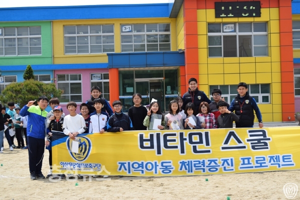 지난 3일 아산무궁화프로축구단은 비타민 스쿨을 위해 김도혁, 김륜도, 김봉래와 함께 영인초등학교를 찾았다.