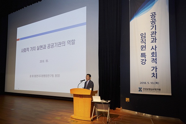 건강보험심사평가원(원장 김승택)은 10일 심시평가원 2층 대강당에서 윤태범 한국지방행정연구원장을 초청, ‘사회적 가치 실현과 공공기관의 역할’에 대한 임직원 교육을 실시했다.