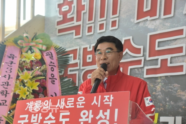 이 후보는 11일 오후 엄사면 자신의 선거사무소에서 열린 개소식에서 "계룡시장은 시민들에게 문화, 복지, 교육 등 각 분야에 대한 비전을 제시해야 한다” 며 자신의 공약을 소개했다.