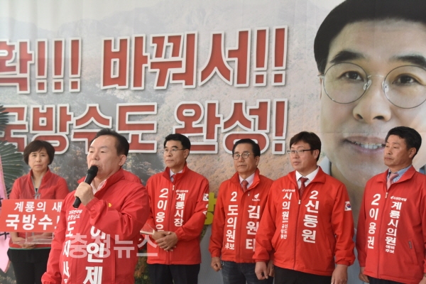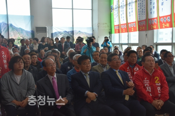 한편 이날 개소식에는 이완구 전 국무총리, 이인제 충남도지사 후보를 비롯한 계룡시 지역 한국당 소속 시의원 후보자들이 모습을 드러내며 이 후보에 대한 지지를 호소했다.