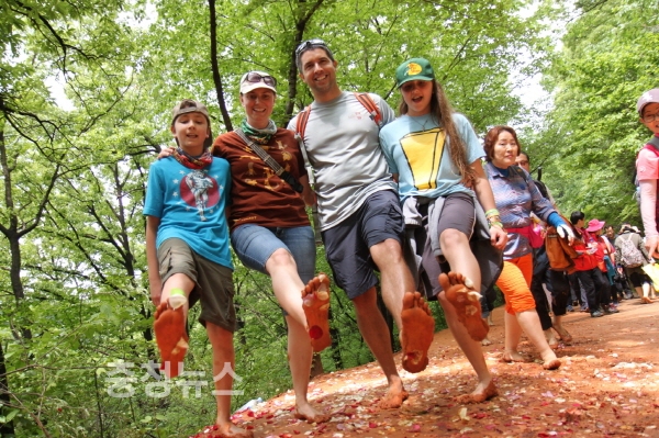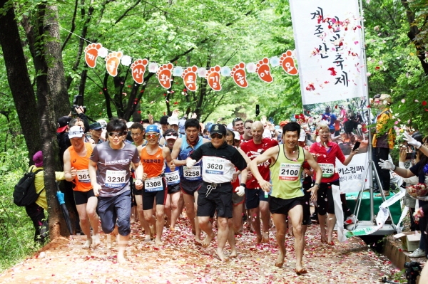 축제 첫날인 12일 흐리고 비가 내렸지만 축제방문객들은 계족산 숲 속 황톳길을 맨발로 걸으며 우중 산책을 즐겼다. 둘째 날인 13일 메인이벤트로 열린 ‘맨발마라톤’은 1500여명의 참가자들이 13km 황톳길을 맨발로 걷거나 달렸다.