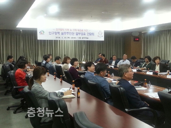 충남 천안시가 시청 중회의실에서 인구정책 실무추진단을 비롯한 중장기 계획·인구 관련 부서 팀장 등 40여 명이 참석한 가운데 ‘인구정책 실무추진단 업무공유 간담회’를 15일 개최했다.