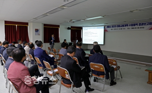 계룡시는 지난 14일 계룡시청 회의실에서 안일선 부시장을 비롯한 실‧과장, 시민 등 50여 명이 참석한 가운데 계룡시 제3차 대중교통 기본계획 용역보고회를 개최했다.