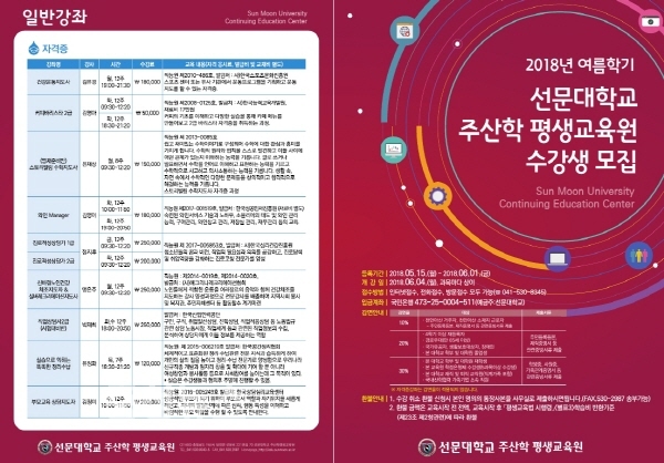 2018학년도여름학기선문대학교평생교육원수강생모집 리플릿