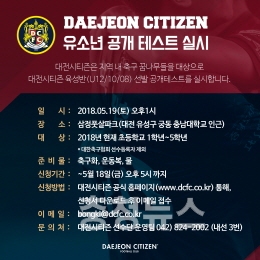 공개 테스트는 이달 19일 오후 1시 삼정풋살파크(대전 유성구 궁동)에서 실시되며, 초등학교 1~5학년 어린이를 대상으로 한다. 공개테스트 참가 신청은 12일까지로, 대전시티즌 홈페이지에서 신청서를 다운로드 후, 작성해 메일로 접수하면 된다.