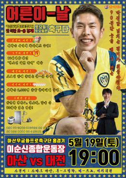 아산무궁화프로축구단(대표이사 박성관)이 가정의 달을 맞이하여 색다른 이벤트를 준비했다. 오는 19일 대전시티즌과의 홈경기가 펼쳐지는 이순신종합운동장에서는 남녀노소 즐길 수 있는 ‘어른이날’을 진행한다.