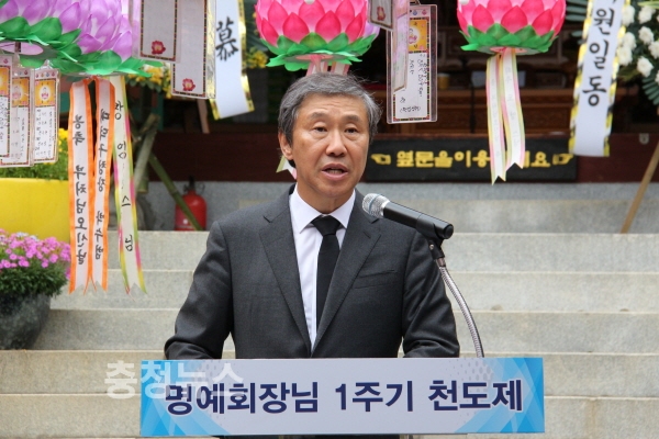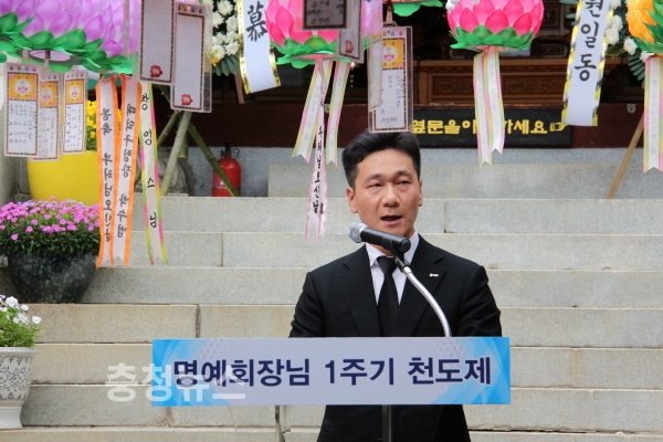 이날 추모사에서 한승구 회장은 "1주기를 앞두고 최근 유림공원에 공덕비가 세워지는 뜻 깊은 행사가 있었다. 또 충남대에서 이인구 인재관 리모델링 협약식이 있었다"며 "회장님의 나눔철학과 실천을 존경한다"고 말했다.