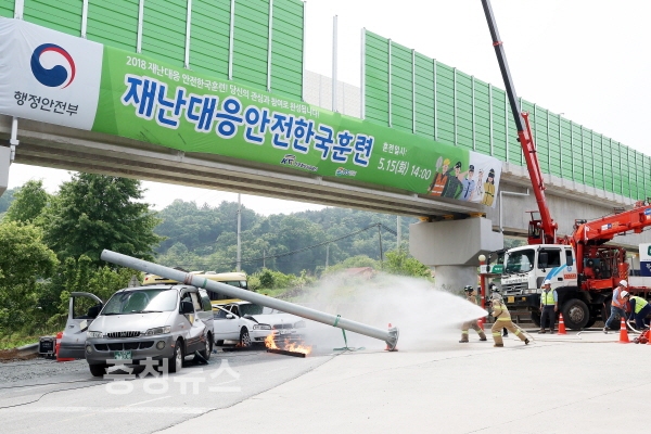 ‘2018 재난대응 안전한국훈련’을 내년 개통예정인 철도종합시험선로 건설현장(충북 청주시 흥덕구 오송읍 공북리 일원)에서 지난 15일 실시