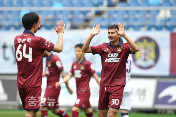 아산을 격파할 대전의 무기는 공격의 삼각편대다. 박인혁, 키쭈, 가도에프로 이어지는 삼각편대의 호흡이 날이 갈수록 빛나고 있다. 지난 안양전에서도 가도에프가 2골, 키쭈가 1골, 박인혁이 2도움을 기록하는 등 고른 활약을 펼쳤다.