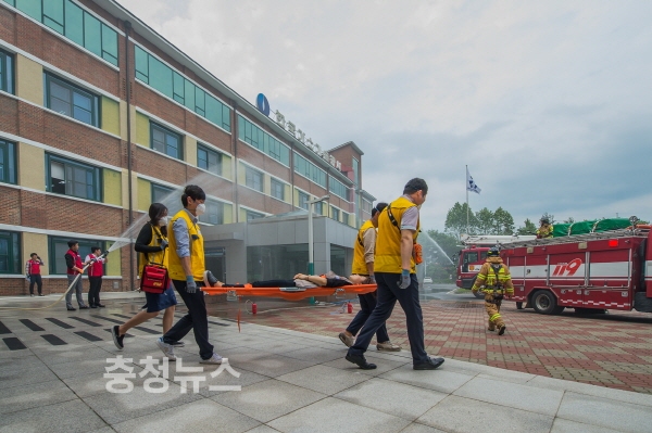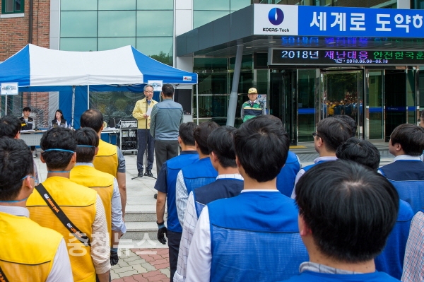 이날 훈련에는 공사 임직원 150여 명이 참석했으며, 전민119소방센터와 합동으로 ‘지진 발생으로 인한 사옥 화재’라는 가상의 재난상황을 설정해 훈련을 실시했다.
