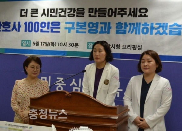 17일 천안지역 간호사 100인이 구본영 천안시장 후보에 대한 지지를 선언했다.