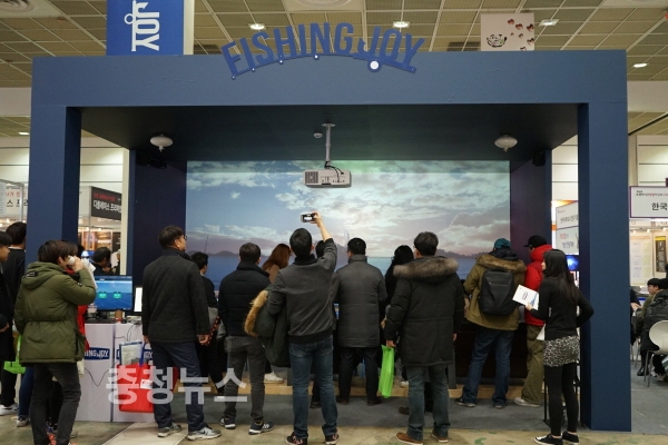 ㈜뉴딘플렉스의 ‘피싱조이(FishingJOY)’는 도심에서 ‘진짜 바다낚시터’에 온 느낌을 살리는데 중점을 뒀다. 차별화된 VR 기술력을 활용해 드론으로 촬영한 통영 마라도와 욕지도 등 바다 풍경을 대형 파노라마 스크린 위에 생생하게 담아낸 데다 파도 소리, 갈매기 소리 등 리얼한 사운드로 청각적 효과를 살렸다.