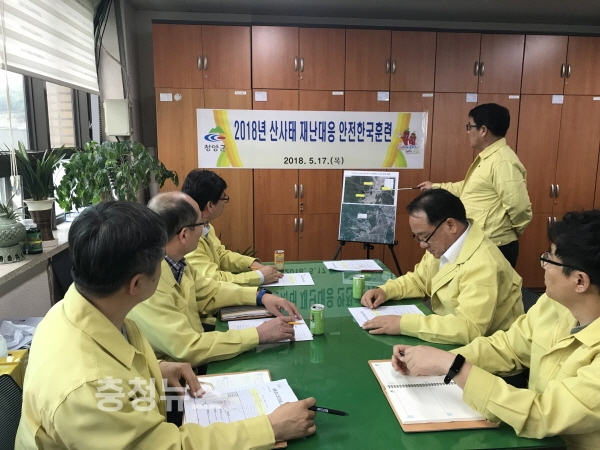 충남 청양군은 지난 17일 산림축산과를 중심으로 앞으로 다가올 집중호우와 태풍피해에 대비해 전국 동시 ‘2018년 산사태 재난대응 안전한국훈련’을 실시했다.