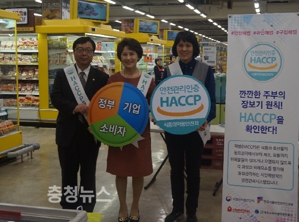 한국식품안전관리인증원(대전지원장 김영수)는 “안전한 먹을거리를 HACCP(해셥)을 소비자들에 함께 홍보할 수 있는 기회를 만들어 준 대전소비자공익네트워크 도정자회장과 홈플러스 대전지점장님께 감사드린다”고 말했다.