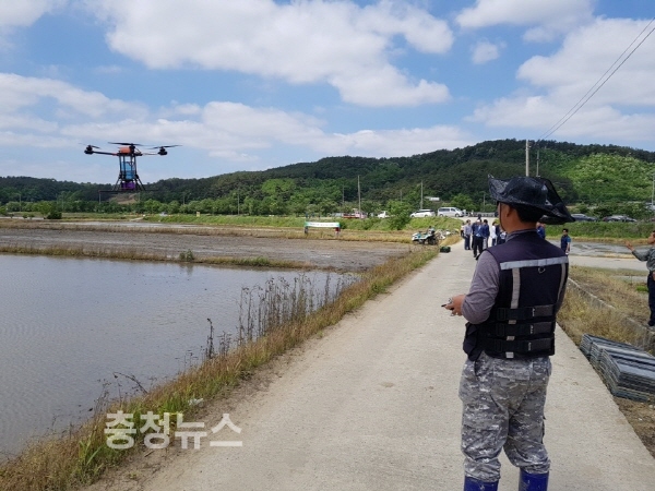 천안시, 농업용 ‘드론’볍씨 파종 시연