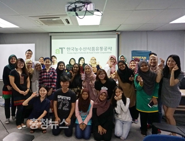 농림축산식품부와 한국농수산식품유통공사(aT, 사장 이병호)에서 운영하는 농식품 청년 해외개척단(AFLO, 이하 `아프로`)은 지난 7일과 14일 두 차례에 걸쳐 말랴야대학교(University of Malaya, 이하 말라야대) 학생들과‘미래 말레이시아 수출 전략식품 발굴’이라는 주제로 한국 식품에 대한 소비수준을 조사하는 행사를 개최했다고 22일 전했다.