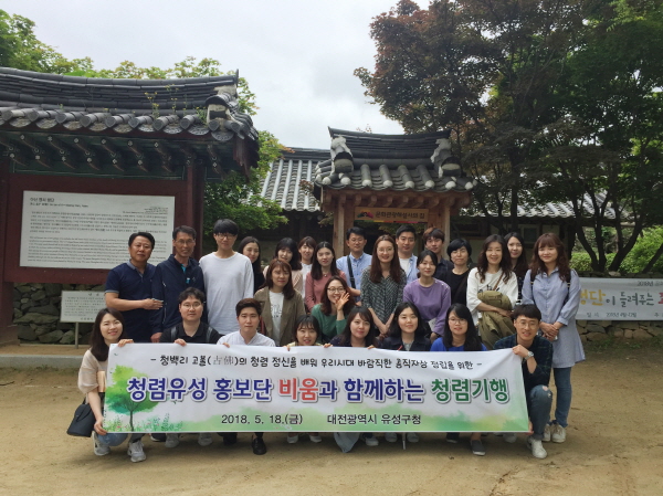 이번 프로그램은 역사 속 청백리 정신이 살아 숨 쉬는 고장을 방문하여 선조들의 청렴 정신을 마음에 새기고 배우기 위해서 마련되었으며, 청렴유성 홍보단 ‘비움’을 이끄는 감사실 주관으로 감사실장 등 28명이 참여했다.