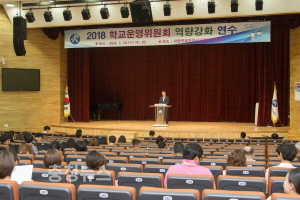 세종시교육청은 23일 청사 내 대강당에서 관내 학교운영위원회 위원장과 운영위원 300여 명을 대상으로 ‘단위학교 자치 역량 강화 연수’를 실시했다.
