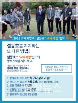 설동호 대전교육감 예비후보의 ‘교육사랑 펀드’ 가 오늘(23일) 오전 10시부터 마감까지 운영된다.