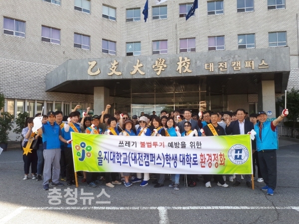 대전 중구는 23일 을지대학교 대전캠퍼스 주변에서 거리청소와 불법투기 예방 캠페인을 실시했다고 밝혔다.