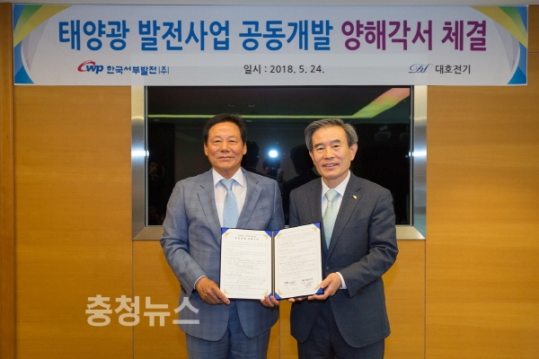 한국서부발전(사장 김병숙) 24일 태안 본사에서 대호전기(회장 이기상)와 함께 재생에너지 태양광 발전사업 공동개발 양해각서를 체결했다고 밝혔다.