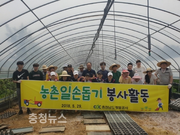 충남개발공사(사장 권혁문)가 29일 홍성군 홍북읍 소재의 딸기 하우스 농가를 찾아 일손돕기 봉사활동을 가졌다.