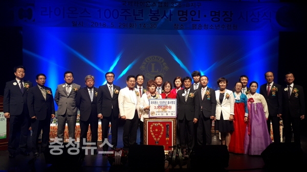 국제라이온스협회 356-B(대전)지구는 29일 평송청소년 수련원 소강당에서 라이온스 100주년 봉사 명인. 명장 시상식을 개최했다.
