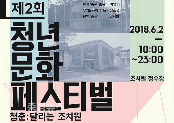 이번 행사는 조치원 정수장 문화재생 프로그램으로 운영된 청년문화기획자 양성과정의 수강생들이 직접 기획단계부터 참여해 마련됐으며, 지역의 역량 있는 작가, 기획자, 뮤지션들과 함께 ‘청춘 ; 달리는 조치원’이라는 주제로 하루 동안 청년들을 위한 네트워킹 페스티벌로 운영될 예정이다.