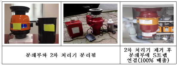 따라서 구매하는 소비자의 경우 관할 지방청에 인증 받은 제품인지 반드시 확인해야한다. 특히 ▲2차 처리기 내부기능(수거망·하부거름망) 탈부착 또는 뚜껑이 열리지 않도록 고정 ▲2차 처리기 없이 본체만 판매(100% 분쇄·배출가능) ▲제품인증표시 미 부착 ▲인증기간 경과 등 불법 유형에 대해 주의해야한다.