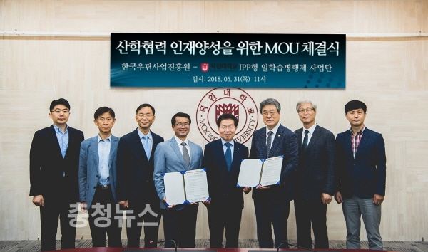 목원대학교(총장 박노권) IPP형일학습병행제사업단(단장 고대식)은 31일 한국우편사업진흥원과 ‘산학협력 인재양성을 위한 업무협약(MOU)’을 체결했다.