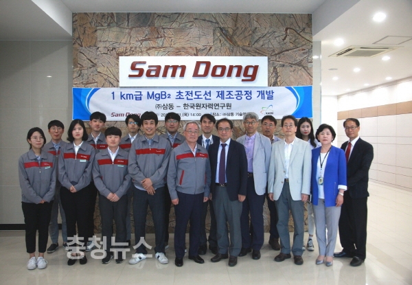 원자력연구원 방사선과학연구소(소장 임인철)는 2014년 2월 MgB2 초전도선 공정특허와 노하우를 전기소재 중견기업인 ㈜삼동에 기술 이전했다. 이후 같은 해 10월 체결한 ‘MgB2 초전도선 제조기술 개발을 위한 공동연구 기술협력합의각서(MOA)’에 따라 연구원 내에 공동연구센터를 개설하여 ㈜삼동의 초전도선 제조연구를 다방면으로 지원해왔다.