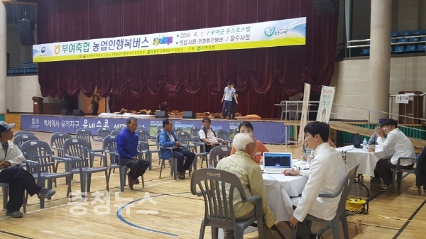 농협 충남지역본부(본부장 조소행)는 1일 부여군 유스호스텔에서 부여축협(조합장 정만교) 관할 축산인들을 찾아 무료진료, 장수사진 등 농업인행복버스를 실시했다.