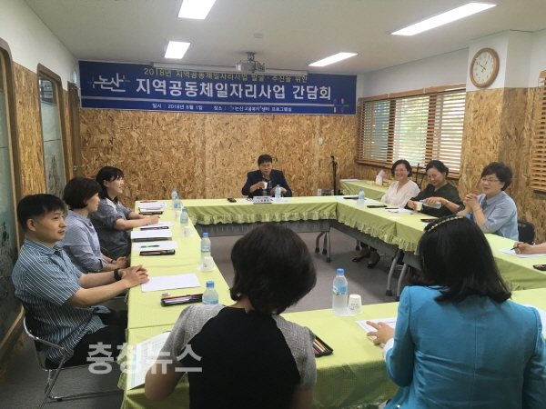 충남 논산시는 1일 고용복지플러스센터에서 올해 상반기 지역공동체일자리사업 참여자 10여명과 함께 ‘2018년 지역공동체일자리사업 발굴·추진을 위한 간담회’를 개최했다.