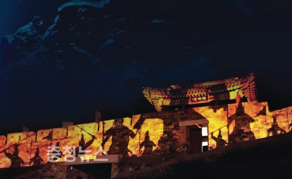 충남 공주시(시장 오시덕)가 유네스코 세계유산인 공산성 금서루 성벽에 상영하고 있는 미디어 파사드 공연이 관광객들의 큰 호응을 받고 있다.