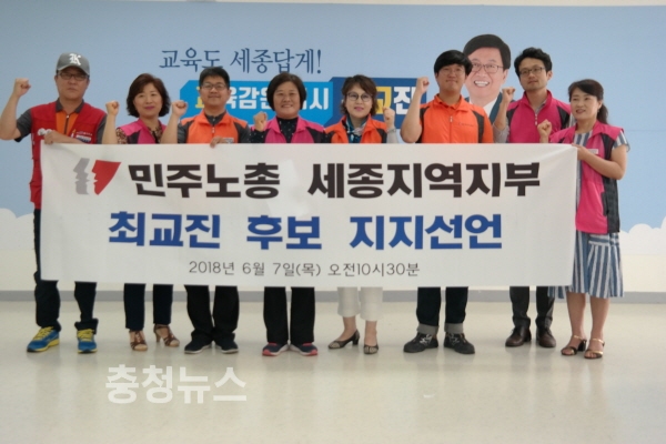 끝으로 “아이들이 행복한 학교, 명품세종교육을 만드는 길에 민주노총 세종지역지부가 함께 할것임을 다시금 결의하며 민주진보 교육감 최교진 후보 지지”를 공식 선언했다.