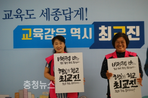 이영희 민주노총 세종지역지부장은 지지선언문을 통해 “최교진 후보는 학생, 학부모, 교육노동자 모두가 행복한 학교를 만드는데 재임 시절부터 진정성을 보여주었으며 노동존중에 지향을 둔 교육감 후보”라고 밝혔다.