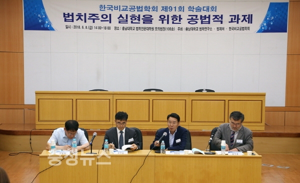충남대 법학연구소(소장: 맹수석 교수)와 한국비교공법학회(회장: 김남철 연세대 교수), 법제처는 8일, 법학전문대학원 모의법정(106호)에서 ‘법치주의 실현을 위한 공법적 과제’를 대주제로 공동학술대회를 개최했다.