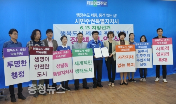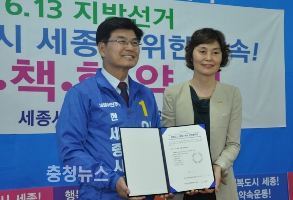 이춘희 세종시장 후보는 11일 세종지역 8개 시민사회단체로 구성된 ‘세종시민단체연대회의(이하 연대회의)와 “7대 정책과제 협약식”을 가졌다.