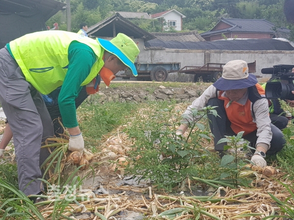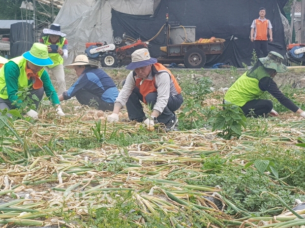 공주시 상왕동 양파수확작업 농촌 일손돕기 나서