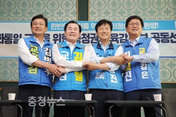 충청권 민주진보 교육감 후보들이 평화통일 교육 활성화를 위해 한목소리를 냈다.
