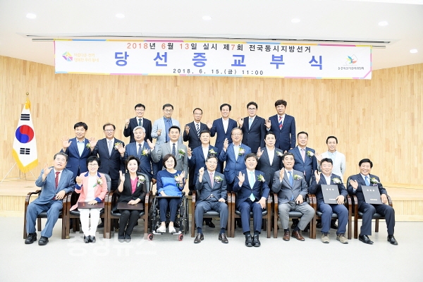 한편 15일 오전 논산시청 회의실에서 열린 당선증 교부식에는 당선자들이 모두 모여 당선증을 받으며 지역 발전을 위해 힘을 모을 것을 다짐했다.