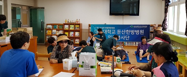 대전대 둔산한방병원은 손창규 교수팀으로 구성된 의료봉사단이 지난 16일 옥천군 지역민들을 대상으로 의료봉사를 펼쳤다고 18일 밝혔다.