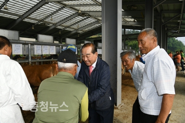 황선봉 군수는 18일 송아지경매시장을 방문해 축사농가의 애로사항 청취