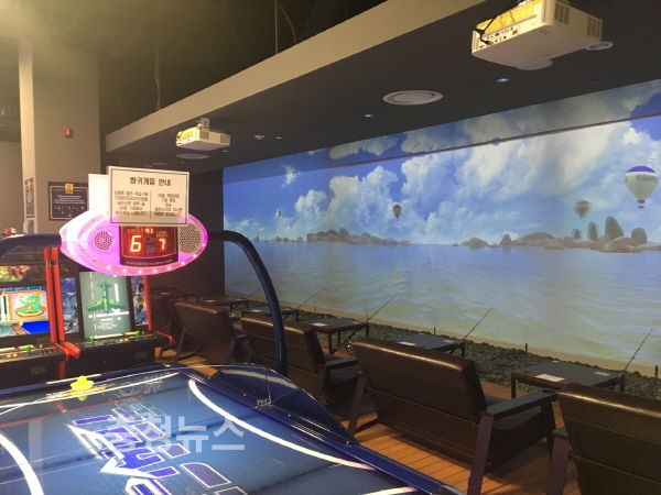 일렉트로마트 인천 연수점에 위치한 스크린 낚시 공간 피싱조이