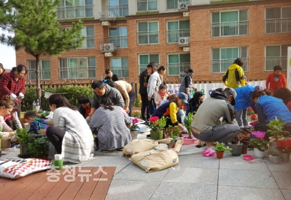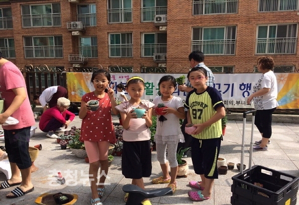 아파트공동체 사업 보도자료 사진-코아루 아파트 폐화분 재활용 사업