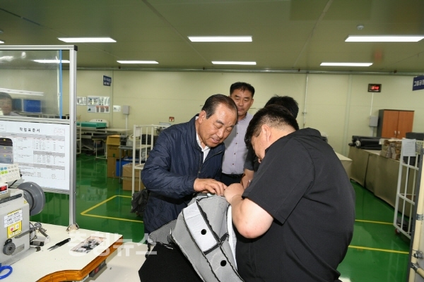 같은 맥락에서 황선봉 군수는 지난 20일 ㈜SG충방을 전격 방문해 공장 가동상황 점검, 정영호 이사 등 충방 관계자를 만나 애로사항을 확인했으며, 생산라인, 휴게실, 식당 등을 일일이 살펴보고 직원들을 격려했다.