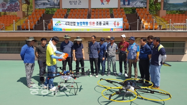 군은 지난해 12월 청양나래무인항공과 무인항공 조종 시설 및 교육비 할인 등을 약속하는 업무협약을 체결했으며, 농업인 드론교육을 위해 드론조정 국가기술자격증 취득자를 배출하고 전 직원 대상 교육을 실시하는 등 4차 산업 혁명시대를 한발 앞서나가고 있다.